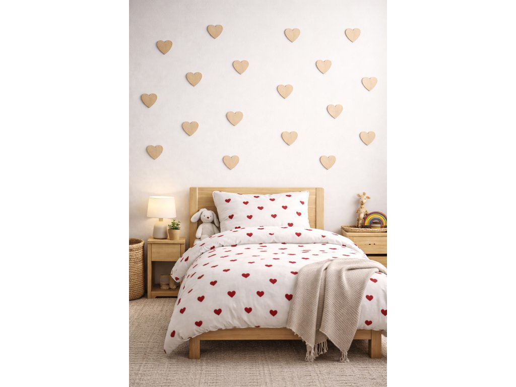 Srdíčka působí jemně, čistě a přirozeně – přesně tak, jak má dětský pokoj působit.